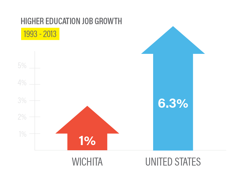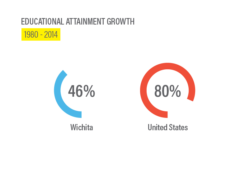 It's not that Wichita's percentage of residents with higher education has diminished. In fact, between 1980 and 2014, it had grown by 46 percent. But that growth is minuscule when compared to 80 percent increase experienced across the United States as a whole.