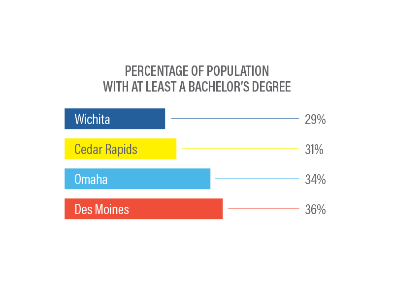 Today, our percentage of college graduates sits at around 29 percent, trailing Cedar Rapids at 31 percent, Omaha at 34 percent and Des Moines at 36 percent.