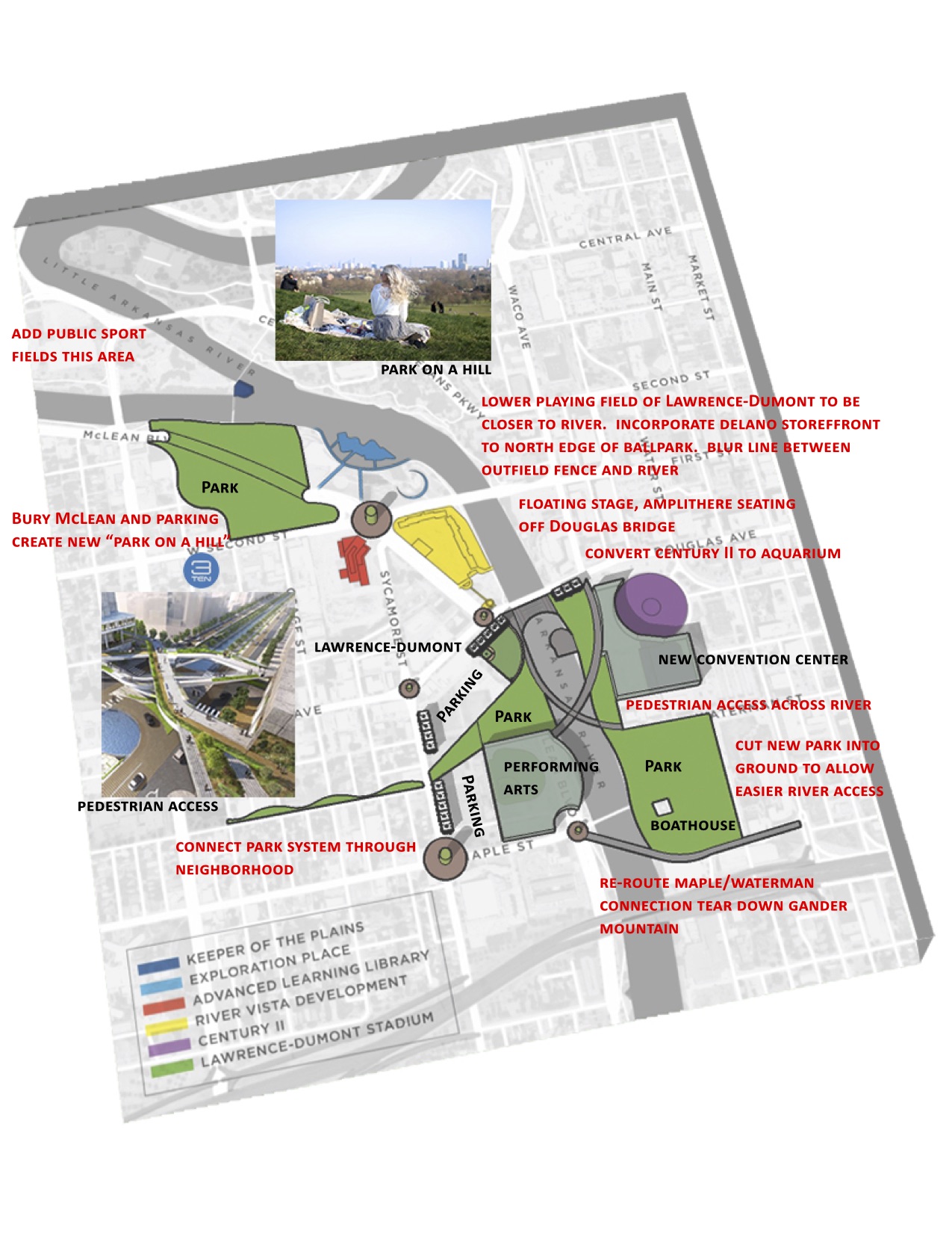 We reached out to some creative minds to share their own riverfront ideas by providing them a current map of the area. They filled it in with no restrictions.