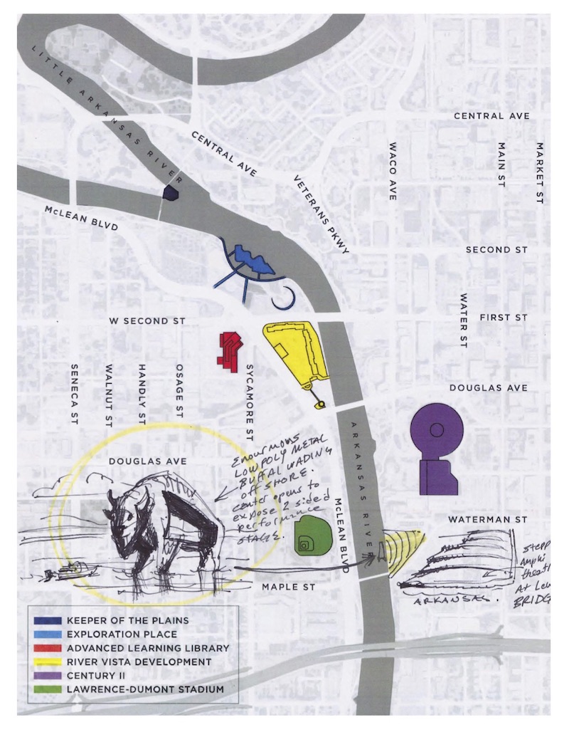 These projects certainly change the landscape of the riverfront, but most still don't directly engage the actual river. The closest thing we have to river-engaged infrastructure is the Keeper of the Plains.