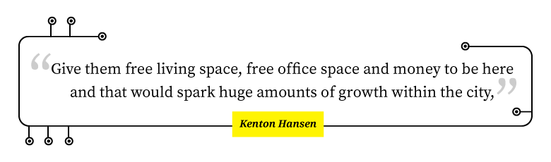 If Hansen could “wave the magic wand,” he says he would take a building downtown and renovate the top five floors for living spaces and the bottom five for offices.