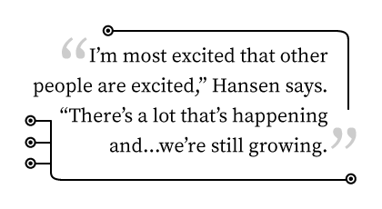 "I'm most excited that other people are excited," Hansen says. "There's a lot that's happening and ... we're still growing."