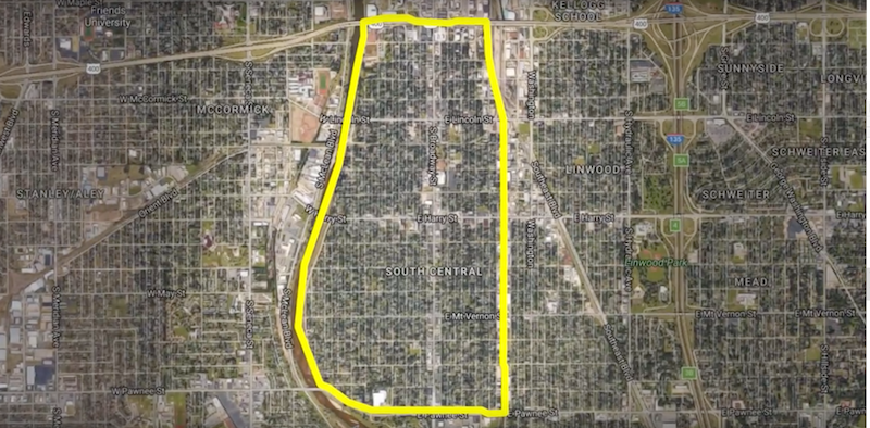 A map of South-Central Wichita, which includes the South Broadway corridor.